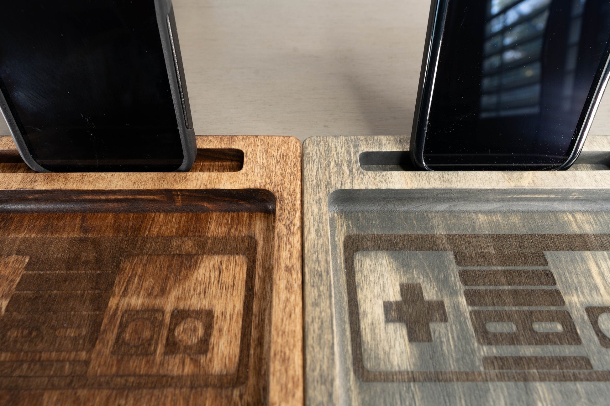 Handcrafted Classic Console Controller Desk Tray: Universal Phone Slot