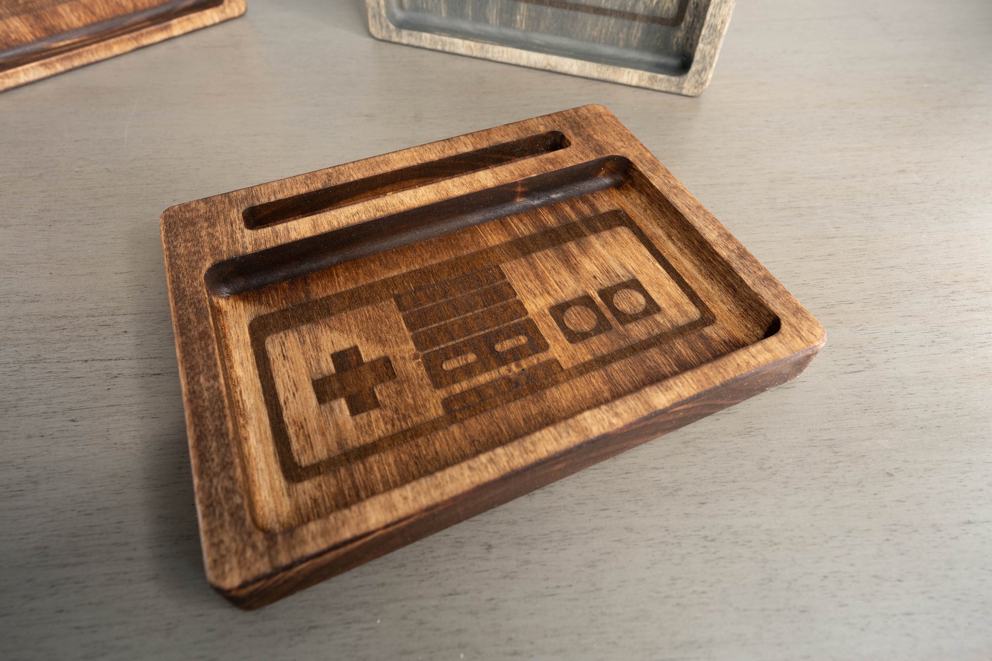 Featuring an intricately inlaid outline that evokes memories of your favorite classic game controller, this tray adds a touch of retro charm to any setting.